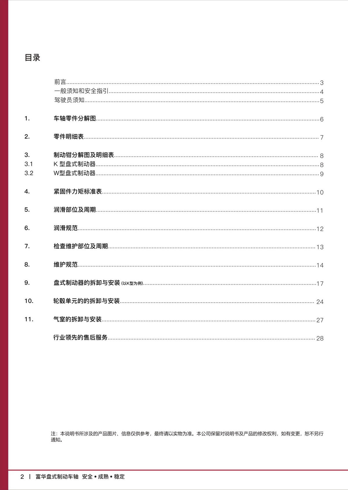 富华盘式制动车轴【产品维护保养手册】